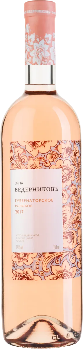 Для вина ВИНОДЕЛЬНЯ ВЕДЕРНИКОВЪ ГУБЕРНАТОРСКОЕ РОЗОВОЕ виноград собирают вручную и тщательно сортируют на лозе во время сбора и перед переработкой на триажном столе. Брожение и последующая выдержка на тонком осадке в емкостях из нержавеющей стали с контролируемой температурой.Описание