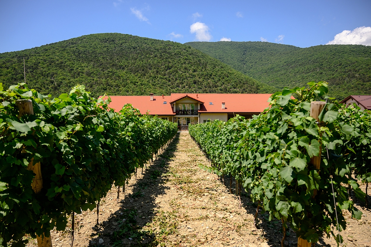 Именно здесь, в этом красивейшем месте, были приобретены первые земли для будущих виноградников. Однако после проведения исследований, стало понятно, что местные условия: скалистая почва, климат, ветра, малое количество осадков, не вполне подходят для производства тихих вин, скорее для игристых. Поэтому было принято решение построить в этом живописном месте семейное производство, а виноград высадить в более подходящем по климату районе Краснодарского края, в Верхнем Чеконе в 30 км от Анапы.