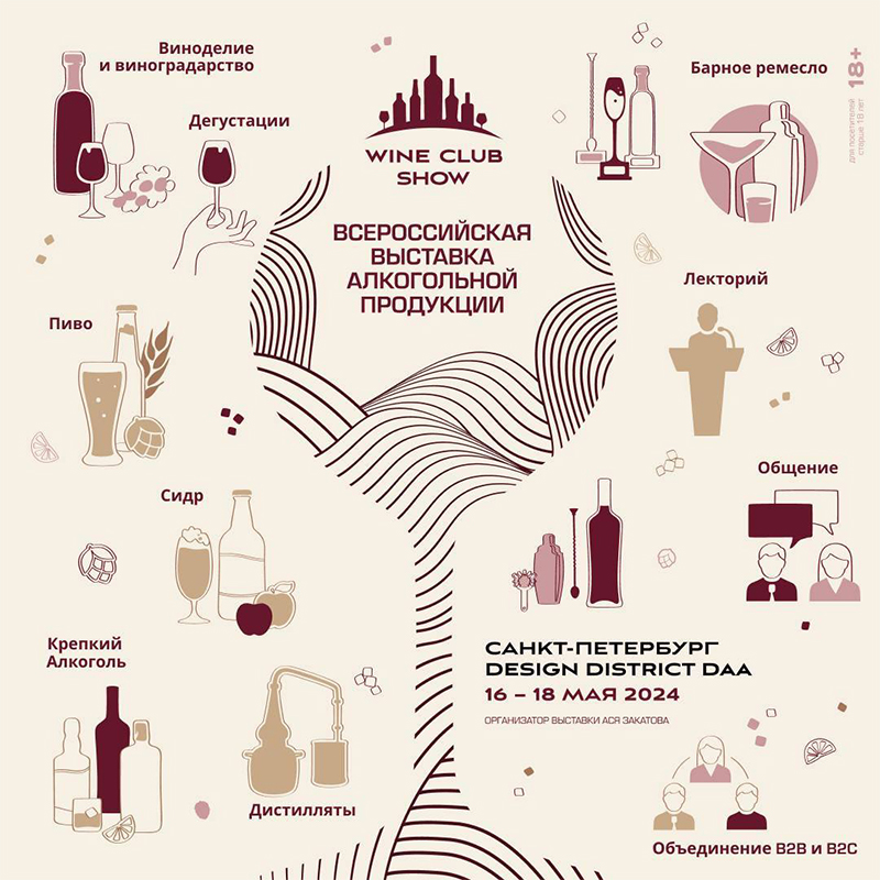 16-18 мая в Санкт-Петербурге пройдет выставка Wine Club Show, где производители алкогольных напитков из разных регионов России продемонстрируют свою продукцию. Информационный партнер выставки — VINO.RU — центр притяжения современных винолюбителей и винопроизводителей.