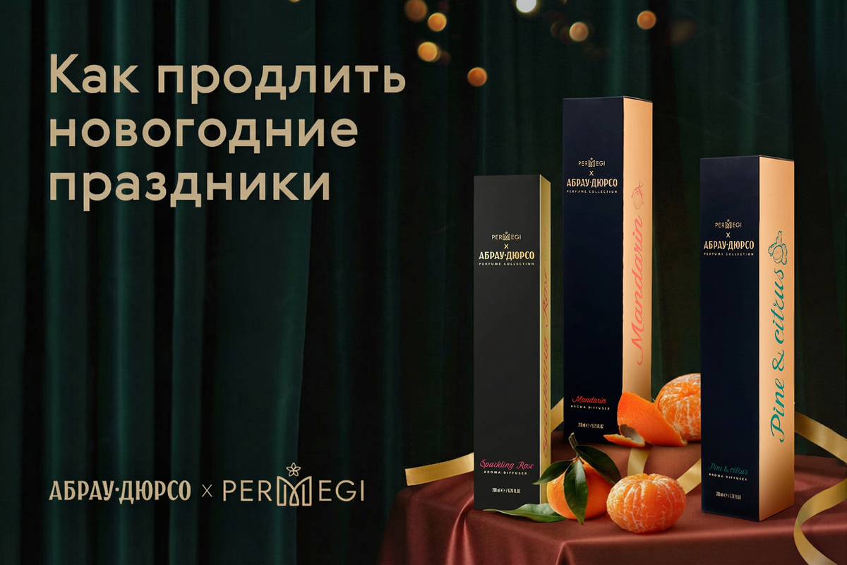 Вдохновившись атмосферой зимних праздников, PERMEGI и «Абрау-Дюрсо» разработали зимнюю коллекцию ароматов для дома, символизирующих волшебство новогодних праздников. В коллекцию вошли три аромата: